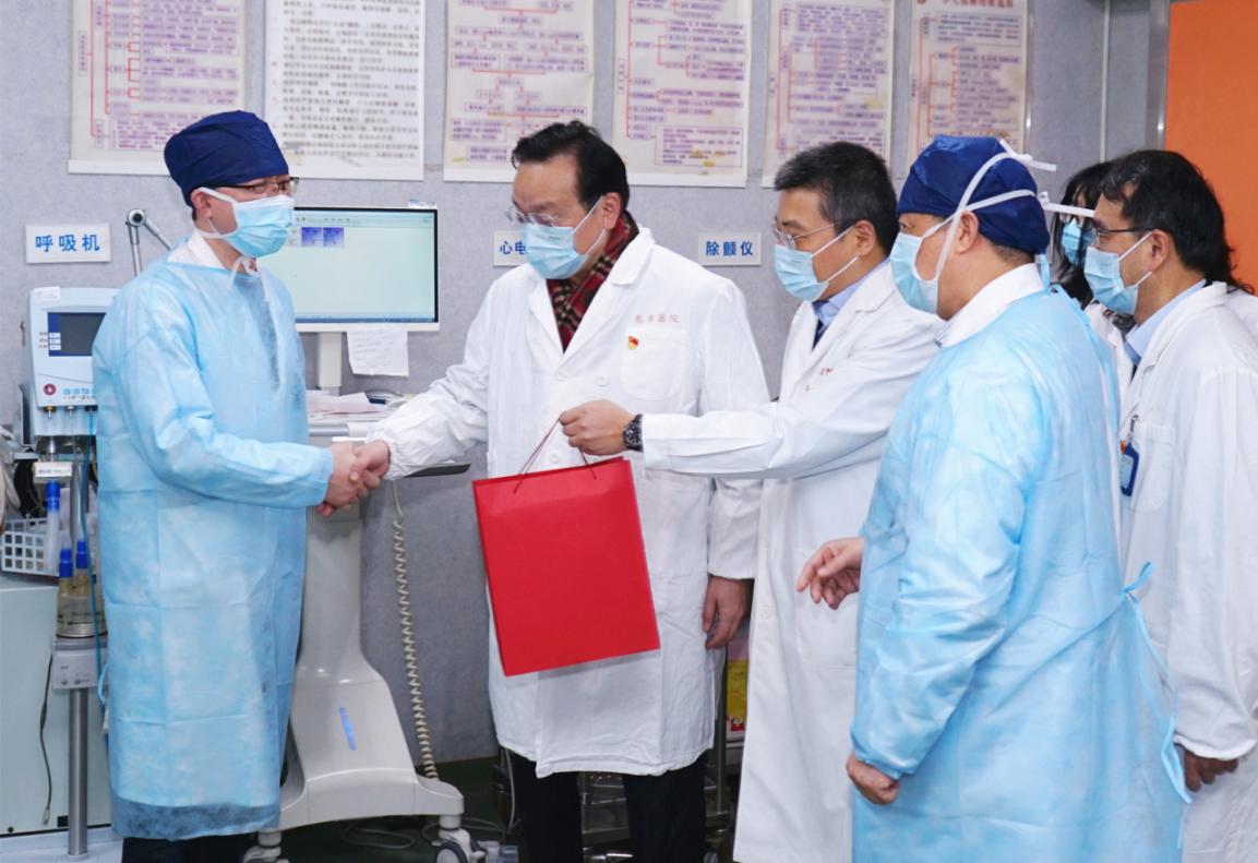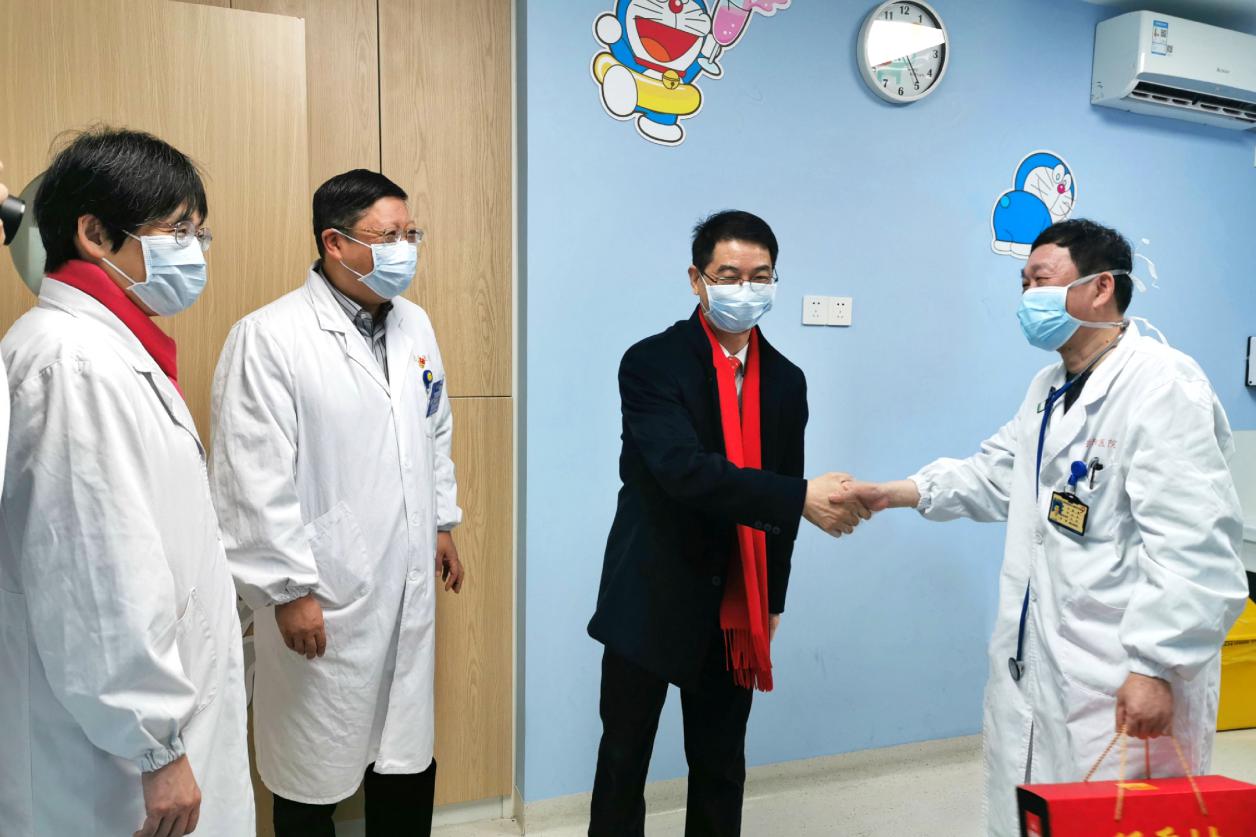 在各附属医院的急诊、儿科、检验、发热门诊等处,领导们每到一处,都热情地与各科室工作人员一一握手,向他们致以新春佳节的美好祝愿。