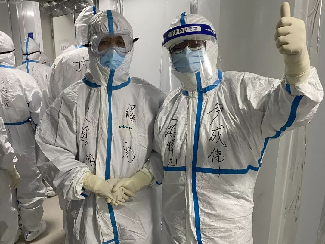 来到武汉雷神山医院后,经过三天紧张培训和前期周全准备,2月19日下午,我们披上“战袍”,准备“迎战”!感谢我的队友们,尤其是医疗队总护士长卢根娣主任,她的从容淡定给了我们莫大的信心。还要感谢我们的患者,他们充满信任和感激的眼神,也让我们的心更加坚定。在短短一小时内,曙光医院负责的病区顺利收治24位病人。我带领医生尹成伟、张兴、王婧第一时间查房,完善病患病史采集;商斌仪、吕婵、蔡蔚然、郭君四位医生在办公室整理信息、开出医嘱,紧张有序,忙碌至深夜。一定是队中的这群年轻人给我的力量,连续工作了18个小时,我这年过半百的身子骨居然一点也没有感到累。睡不着时,还在想着之前看过的病例和开过的药方、临行前张炜主任反复讲到的此次新冠肺炎的辨证特点以及他在上海的临证心得。中医中药在缓解病人症状、提升救治成功率上大有可为,我已经迫不及待了。