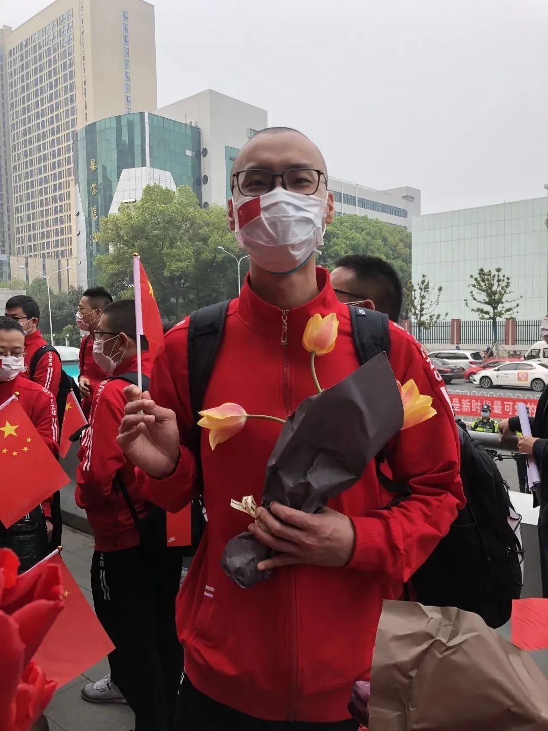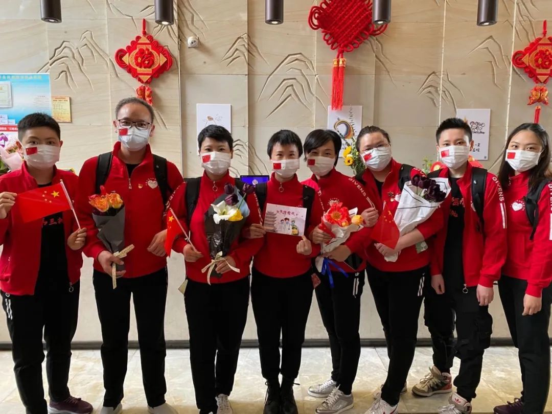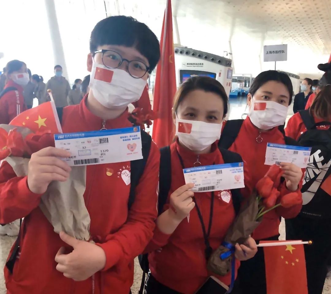 附属光华医院何青青、麦静愔、周萍、汪荣盛、李艳英、端光丽、白杨、秦明、刘恋9名医护人员作为上海长宁区援鄂医疗队队员此次凯旋归来。从最初的恐惧到后来的坦然面对,从最初对工作不熟悉到后来的游刃有余,从最初与患者语言的交流困难到后来“爹爹、娘娘”的称呼。他们终于用汗水与坚韧换来了光明和胜利!(来源:央视新闻、上观新闻、各附属医院)