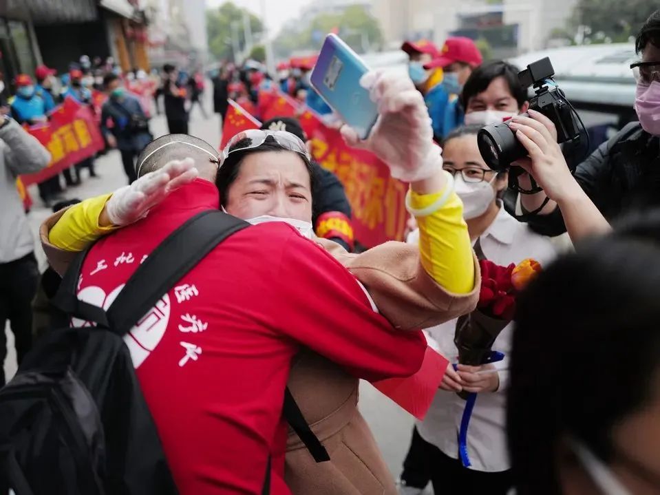 许许多多自发而来的武汉市民为队员们送行,他们喊着,“谢谢你们,谢谢上海!”那一刻,附属市第七人民医院黄芳流下了激动的眼泪。在武汉奋斗的日日夜夜依然历历在目,黄芳为自己身披这一身白色战袍而感到无比骄傲。同批支援的队员程文领说:“再见热干面,再见武汉三院,感谢给予我们支持和帮助的所有组织和个人。继续留守金银潭医院、雷神山医院的战友加油!武汉加油!明天一定会更好!”