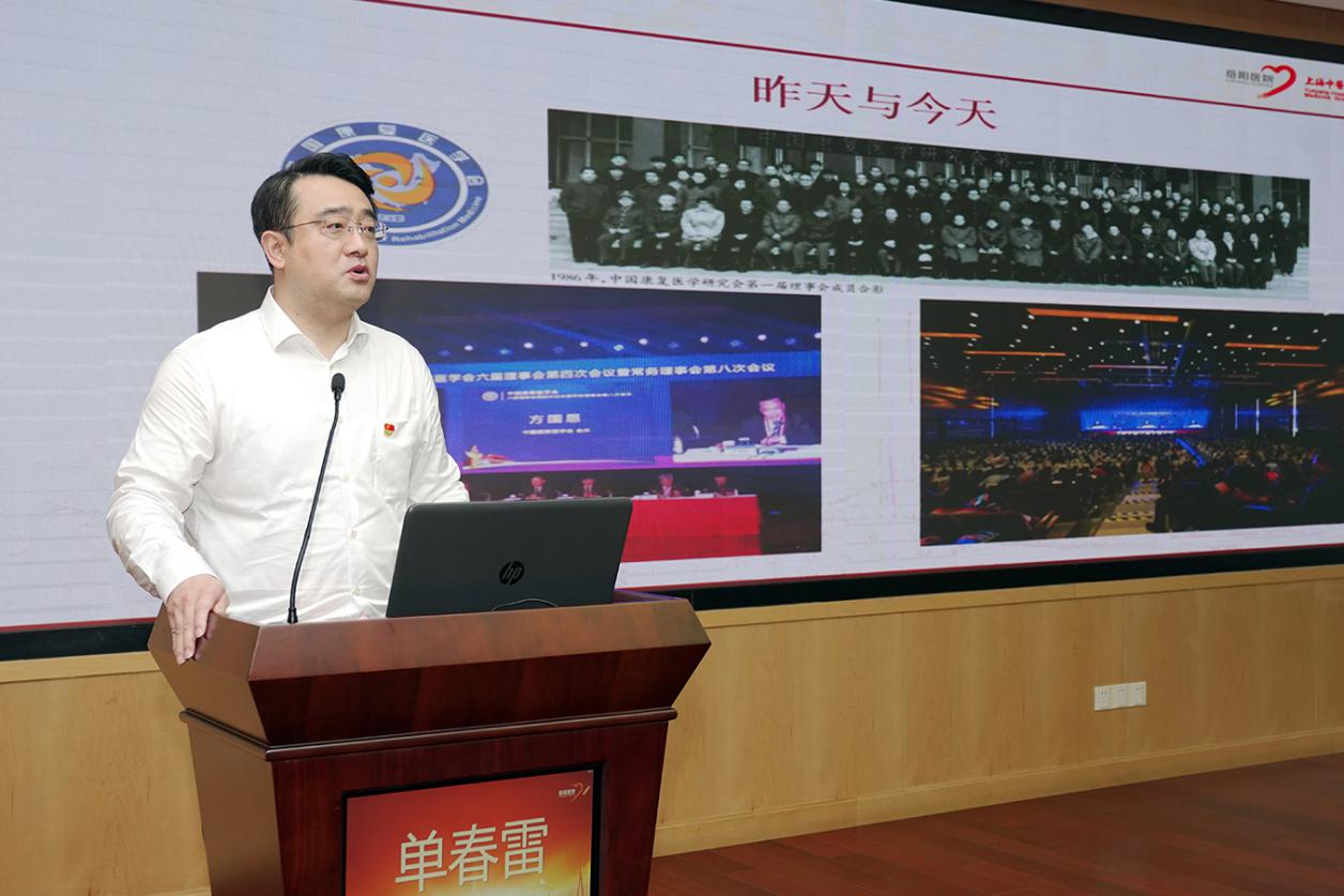 教育部中医智能康复工程研究中心执行主任、开云电竞官网下载安卓康复医学院院长、岳阳中西医结合医院康复医学中心主任单春雷教授作“抓机遇,发展中国特色康复医学”主题报告。他介绍了中国康复医学的发展、开云电竞官网下载安卓康复学科的发展情况及学科地位,提出了要将中医治疗方式与现代康复医学充分结合,打造多学科交叉的中国特色康复,从而突破目前的发展瓶颈。