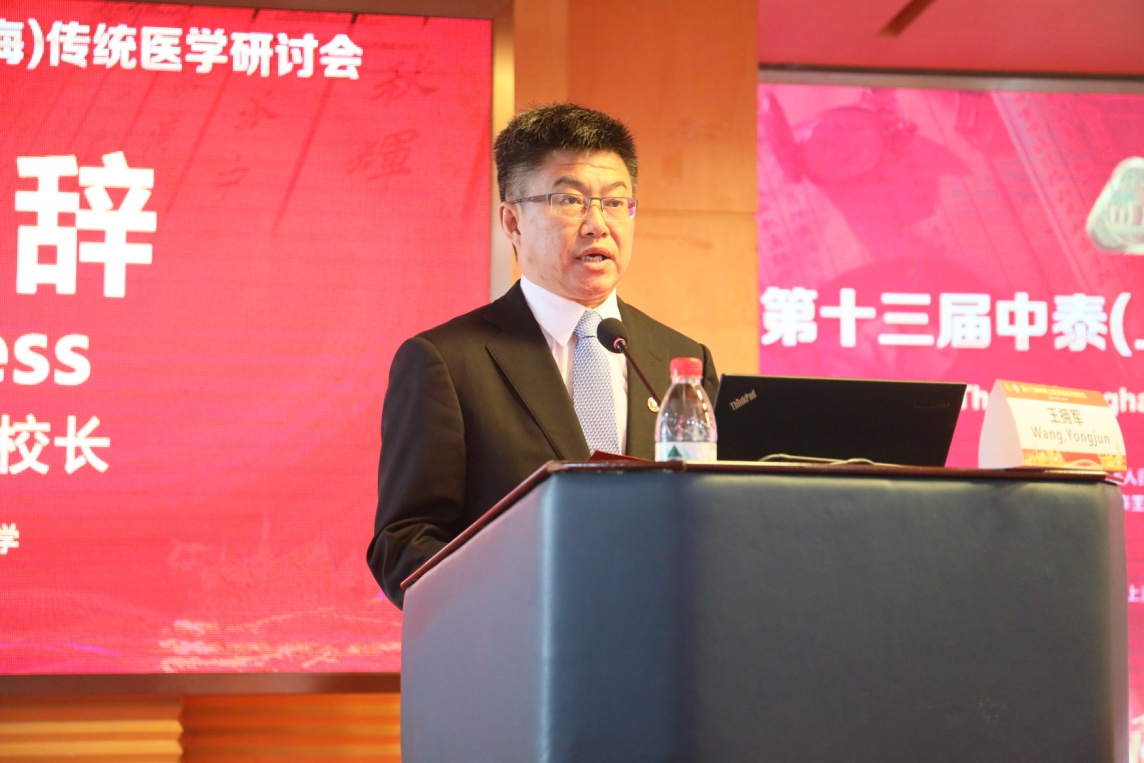 我校副校长王拥军,上海市中医药管理局中医药传承发展处处长王庆华、副处长聂爱国,上海市卫健委外事处主任科员赵荣、普陀区卫健委主任邓海巨、上海市卫生系统各条线主管中医药发展的分管领导以及普陀医院的党政领导班子成员、各临床科主任出席本次学术活动。开幕式由邓海巨主持,王庆华、王拥军、泰国卫生部泰医与替代医学司Dr. Marut Jirasattasiri(王義亮)司长先后致辞。