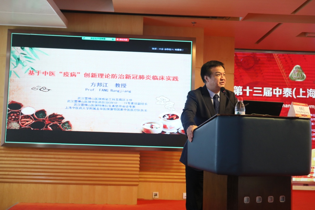在专家授课环节,普陀医院院长黄德魁主持会议。附属龙华医院方邦江教授、曙光医院张炜教授和泰国泰医研究院Dr. Kulthanit Wanaratna(林鲲宝)主任先后作学术报告,主要介绍传统医学在新冠肺炎疫情防控中发挥的作用。