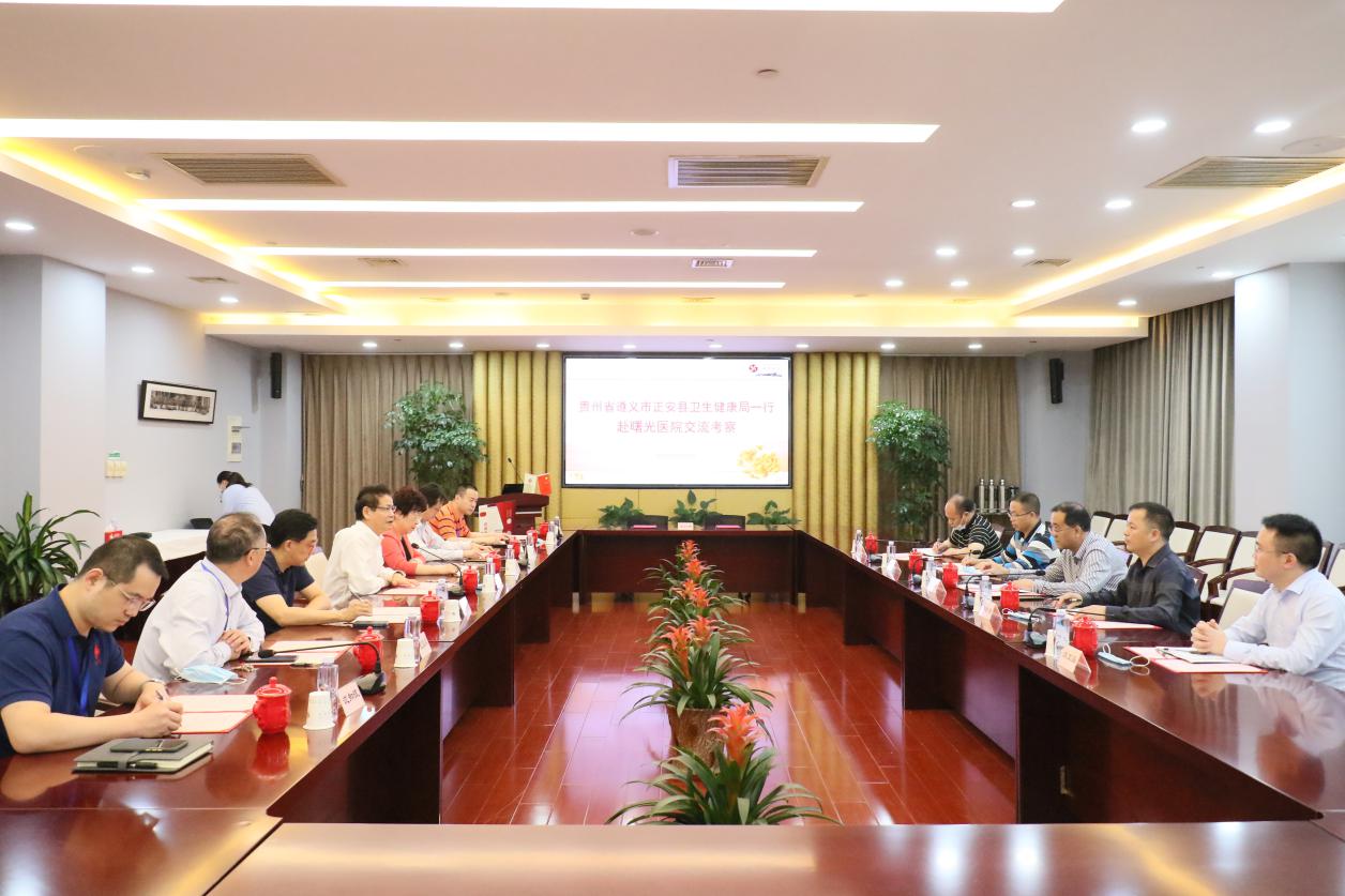 9月21日下午,贵州省遵义市正安县卫生健康局副局长唐义率领遵义市正安县中医院院长郑智勇一行5人到访附属曙光医院。曙光医院党委书记、上海四明医学发展基金会理事长马俊坚,院长周华,副院长冯煜,党委副书记姚政及相关职能部门负责人出席。