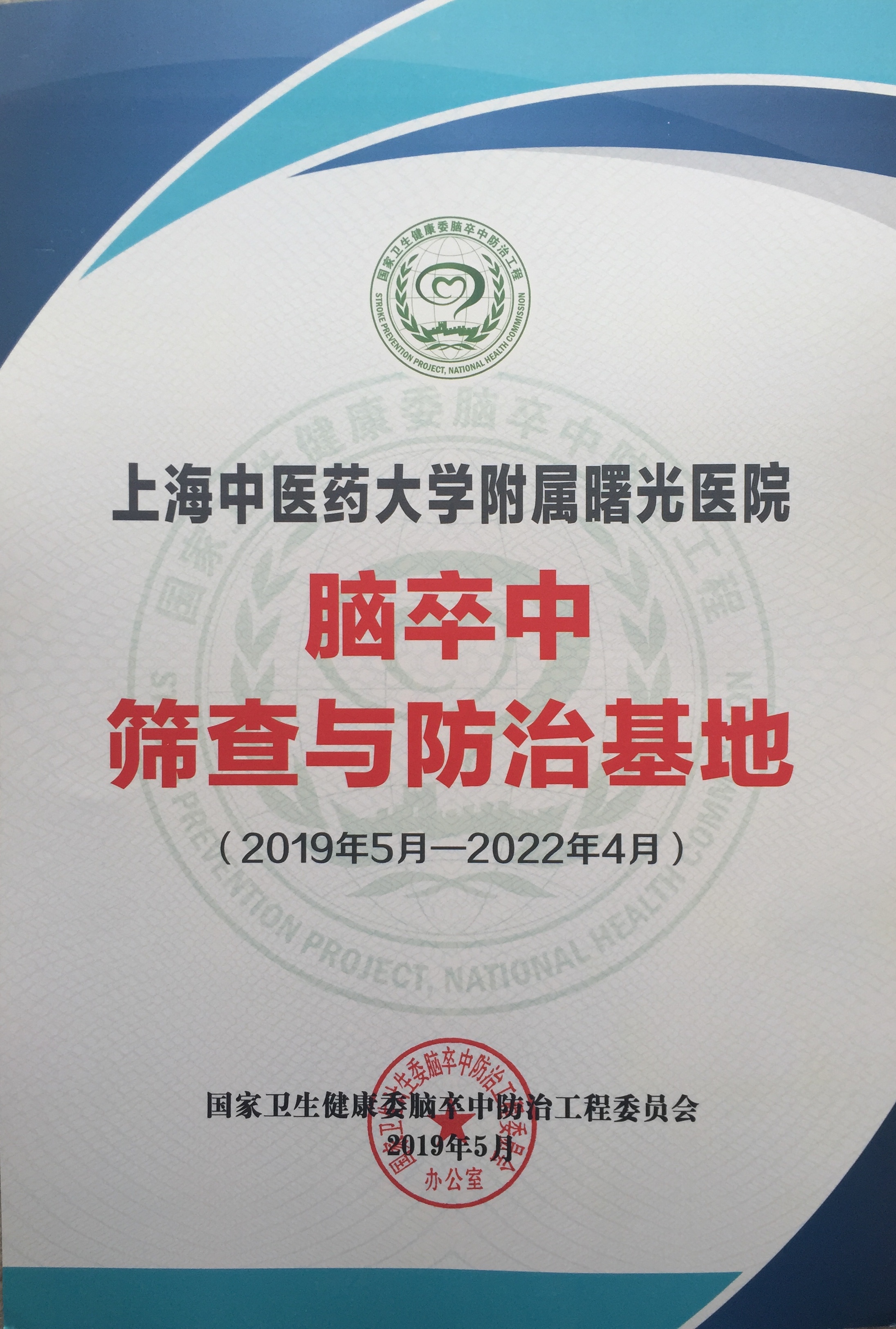 2021年4月,附属曙光医院被中国卒中学会评为2020-2021年度“优秀数据管理卒中中心”。曙光医院注重卒中中心流程管理及质量控制,2013年入选“国家卫生计生委脑卒中筛查与防治基地医院”及“上海市脑卒中临床救治中心”项目,2016年以来被国家脑防委授牌“高级卒中中心”。