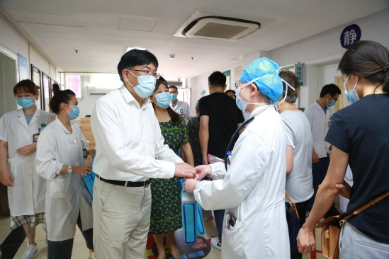近日来,申城刚经历了台风的袭击,气温又开始持续攀升,酷暑伏天,骄阳似火。8月2日上午,校党委书记曹锡康,校长徐建光,校党委副书记朱惠蓉、季光、许铁峰,副校长陈红专、杨永清、王拥军、舒静,在党委校长办公室、医院管理处同志的陪同下,分别赴我校九家附属医院代表大学慰问高温酷暑下仍奋战在临床及防疫防控一线的医务工作人员,并送上防暑降温的慰问品以示感谢和关怀。