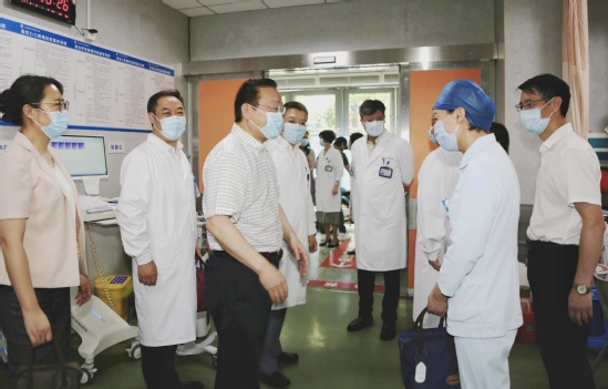 校领导们与各附属医院党政领导班子及相关职能科室负责人先后前往门诊流调处、发热预检、核酸采样点、检验科、急诊、儿科及冬病夏治门诊等部门,亲切慰问一线工作人员,代表学校党委感谢医务人员在疫情防控的关键时期,不惧酷暑,坚守岗位,为上海百姓提供高效、优质、温馨的服务,叮嘱他们注意身体,在确保工作任务顺利完成的同时,做好防暑降温工作。曹锡康强调,目前疫情防疫形势依然严峻,各医院要不断完善应急预案,让防控工作越来越制度化、规范化,始终把为人民的生命健康保驾护航作为工作的出发点和落脚点,保障医疗质量的同时从严从实做好疫情防控各项工作。