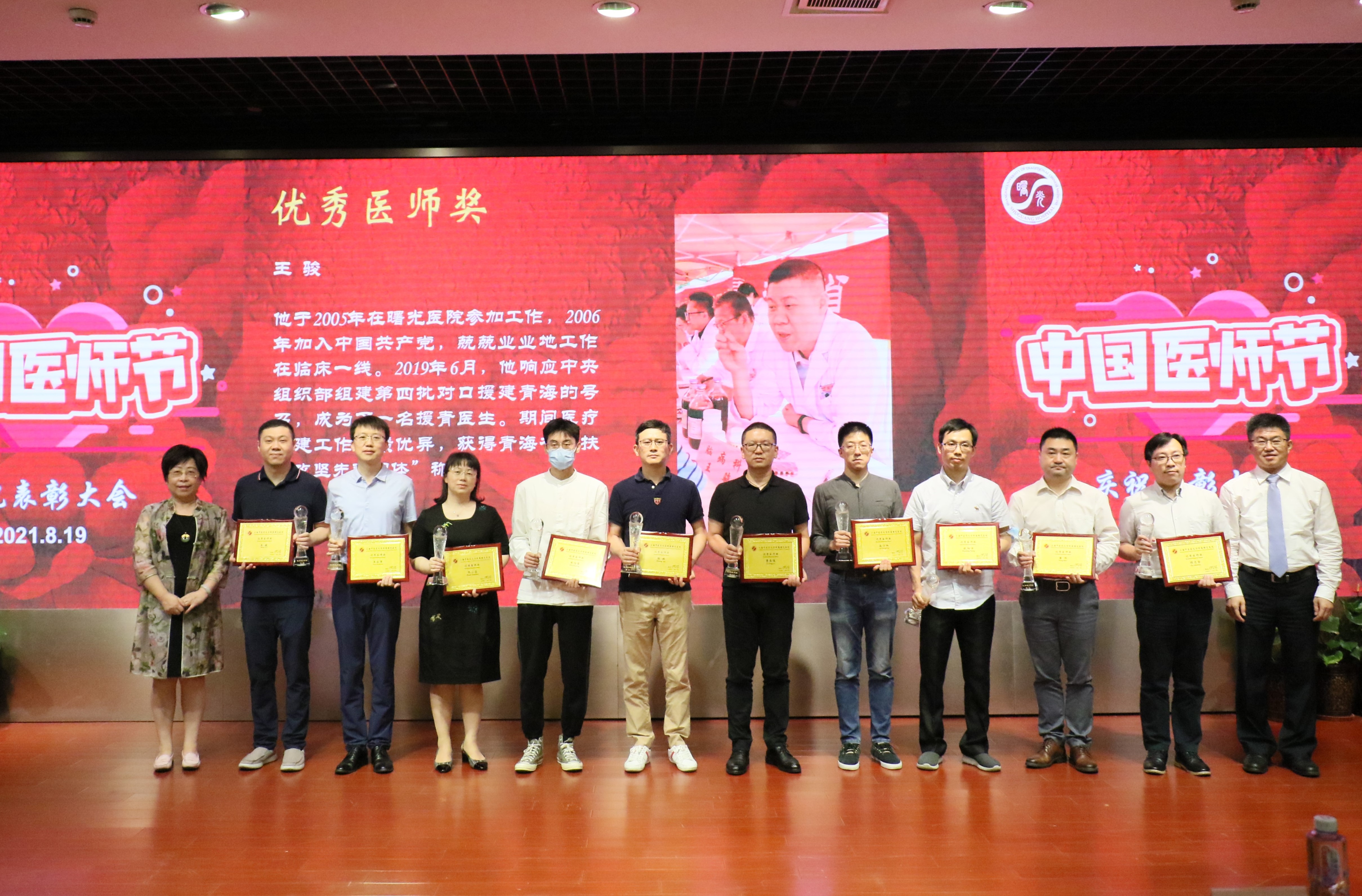 今年中国医师节以“百年华诞同筑梦,医者担当践初心”为主题,为提高医院内部管理能力,加快人才队伍建设,鼓励广大医师争先创优,努力提高技术水平,医院分别对获得优秀医师奖、卓越医师奖、突出贡献奖和终身成就奖的个人以及获得2020年度科室绩效考核A级的集体进行了表彰。