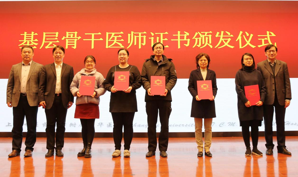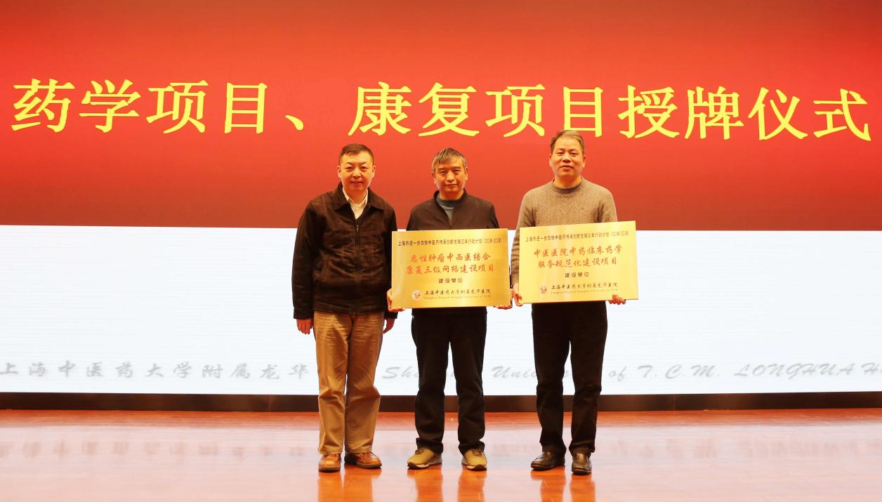 在随后的启动会授牌仪式上,胡鸿毅为龙华医院南部区域中医医联体牵头单位授牌。刘华、王庆华、陈跃来为南部区域中医医联体成员单位授牌。胡鸿毅为龙华医院“中医医院中药临床药学服务规范化建设”项目和“恶性肿瘤中西医结合康复三级网络建设”项目授牌。陈跃来为上海市中药专家季申工作室授牌。同时龙华医院也为2020年度基层骨干医师研修班的优秀学员颁发了正式双聘证书,这批学员受聘之后可以在我院开展多点执业工作。