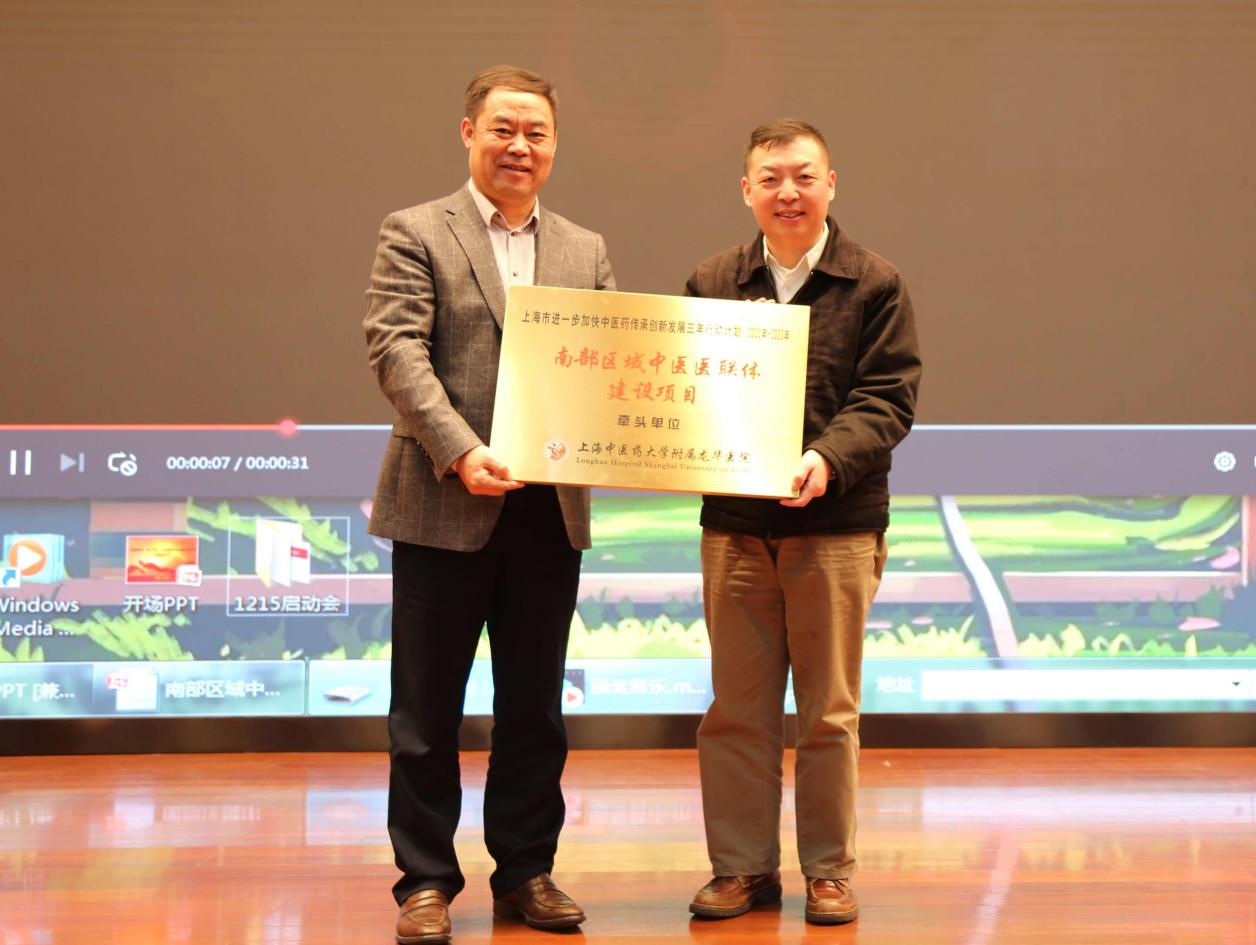 12月15日下午,附属龙华医院召开中医药传承创新发展三年行动计划(2021年-2023年)建设项目启动会。上海市卫生健康委员会副主任、市中医药管理局副局长胡鸿毅,上海市中医药管理局中医药服务监管处处长刘华,上海市中医药管理局中医药传承发展处处长王庆华,龙华医院院长陈跃来,奉贤区卫生健康委员会主任褚国华,徐汇区卫生健康委员会主任任雪雷、副主任谢黎,闵行区卫生健康委员会副主任马应忠,金山区卫生健康委员会副主任张伟东,长宁区卫生健康委员会副主任张戎,上海市食品药品检验所中药天然药物室保健食品室主任季申,以及来自上海市南部区域中医医联体的成员单位领导、基层骨干医师研修班学员等。会议由龙华医院副院长李屹主持。