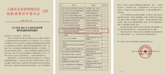2021年12月,医院“中医特色现代化医政管理与高质量发展体系在大型综合性中医医院中的融合应用”,得到市国资委、市经济信息化委等多部门认可,被市企业管理现代化创新成果评审委员会评为“2021 年上海市企业管理现代化创新成果”三等奖。