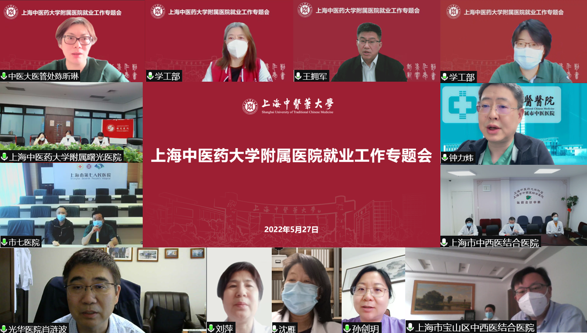 附属龙华医院、曙光医院、岳阳中西医结合医院、市中医医院、普陀医院、上海市中西医结合医院、第七人民医院、光华医院、宝山医院相关负责人分别汇报交流了临床医学院学生就业工作、医院招聘计划及目前招录进度等,分享了前期进行网上签约、开展“空中双选会”等积极促进毕业生就业的好做法和好经验。