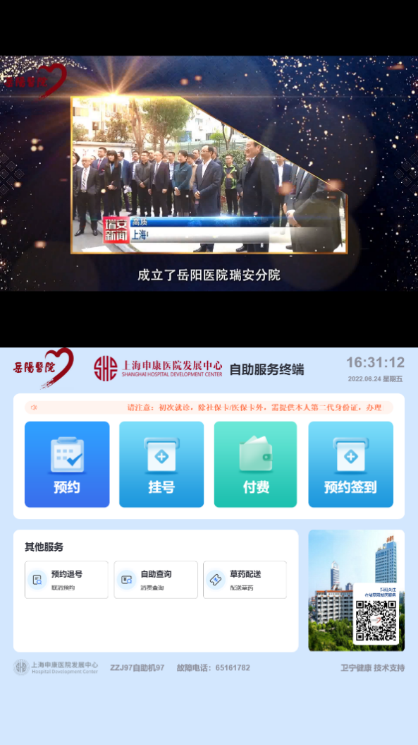 近日,附属岳阳中西医结合医院贯彻落实上海申康医院发展中心智慧医院“三统一”建设要求,成为本市首家实现智慧医院应用大厅与门诊自助机系统规范建设的市级医院,进一步提升便民就医智慧服务能级。