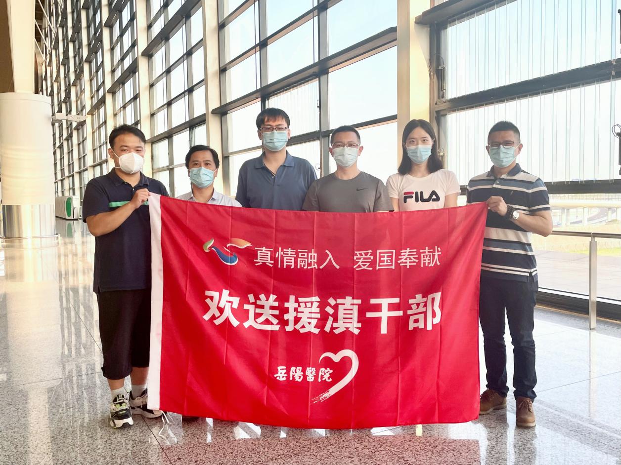 岳阳中西医结合医院副院长姚政感谢医疗队队员勇担重任的奉献精神,指出要把医院先进的医疗技术带去砚山,协同合作、因地制宜,结合当地医疗水平充分发挥中医药和中西医结合特色,全心全意守护群众健康,并再三叮嘱队员们在对口帮扶期间注意疫情防控、保重身体和注意安全,牢记医院是医疗队的坚实后盾,会全力做好后勤保障工作,解决队员后顾之忧。