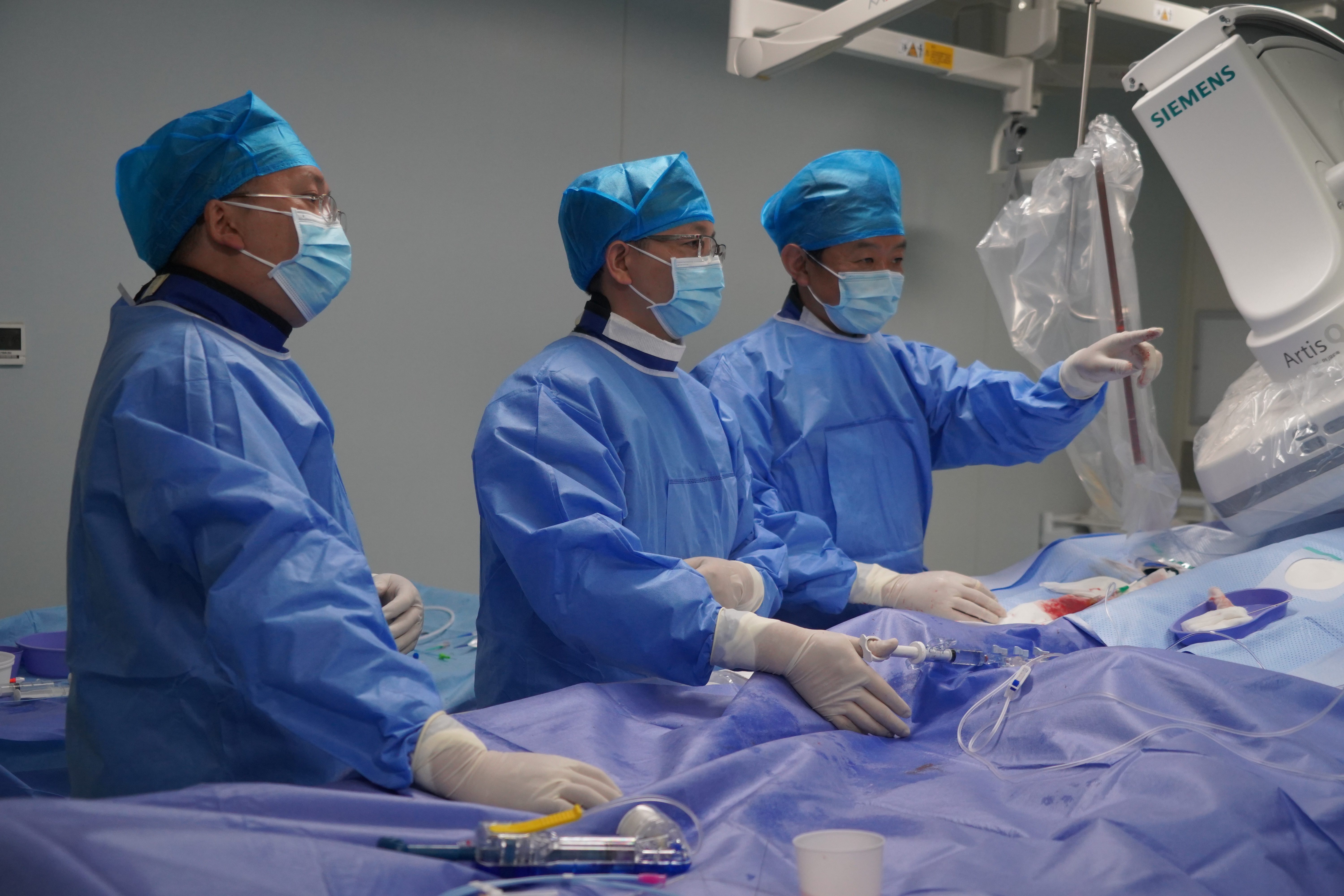 8月27日下午,专家团一到砚山县中医医院,樊民就被岳阳中西医结合医院派出参与中医药对口帮扶工作的援滇医疗队员、医院心内科主治医师樊荣拉进了砚山县中医医院介入室,穿上了铅衣。介入室内,砚山县68岁的陆老伯躺在手术台上。他已有高血压病史13年了,但一直未曾规律服药,在6个月前突然出现反复心悸、胸闷、气促的症状,后经检查诊断为“冠心病 三支病变 稳定型心绞痛”。当看到砚山县中医医院的微信公众号介绍了“新民健康大讲堂”活动后,他向医院提出了请求:“能让上海的大专家给我做手术吗?”