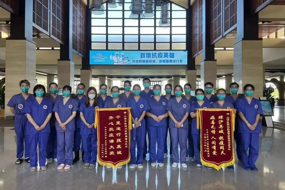 不久后,第二批援琼医疗队又迅速集结,于8月15日抵达海南三亚,队员们随即投入紧张的工作中,在三亚第四方舱医院开展抗疫工作,收治新冠病毒感染者。我校附属医院医疗队在方舱根据自身中医药特色开展治疗,在规范化治疗的同时个性化地给予处方汤剂。同时,在舱内实施了穴位按摩、情志疗法、功法练习等治疗方法,并对于“一老一小”重点关爱,对于孕妇等特殊人群重点关注。中医药全面、深度地参与海南疫情防控救治,效果显著。