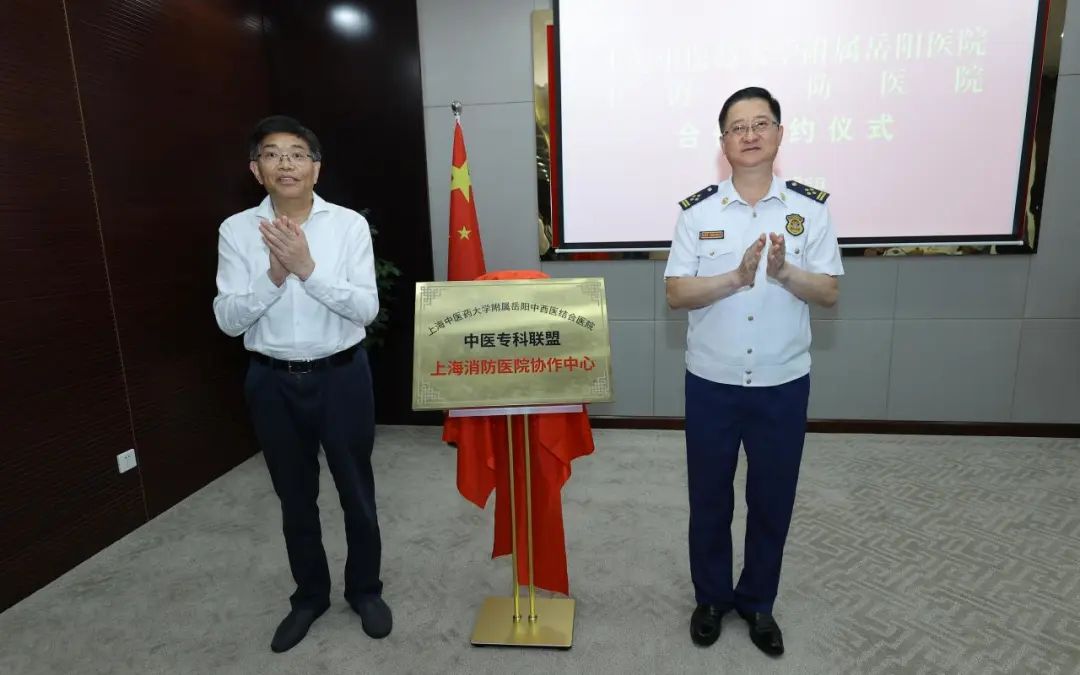 岳阳中西医结合医院院长周嘉、上海消防医院院长周贤龙共同签署了《战略合作协议》。