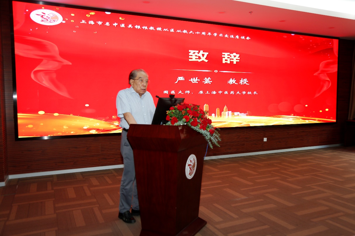 严世芸在致辞中介绍吴银根教授在医教研方面作出的突出贡献,尤其指出吴教授是上海中医药抗疫的先锋者,2003年SARS疫情,他担任上海市防治小组成员并兼任上海市防治SARS中医专家组组长,主持中医药救治工作。2020年新冠疫情,他再次毅然选择上“战场”,作为上海市中医药防控新冠专家组组长主持制定了《上海市新型冠状病毒感染肺炎中医诊疗方案(试行)》。