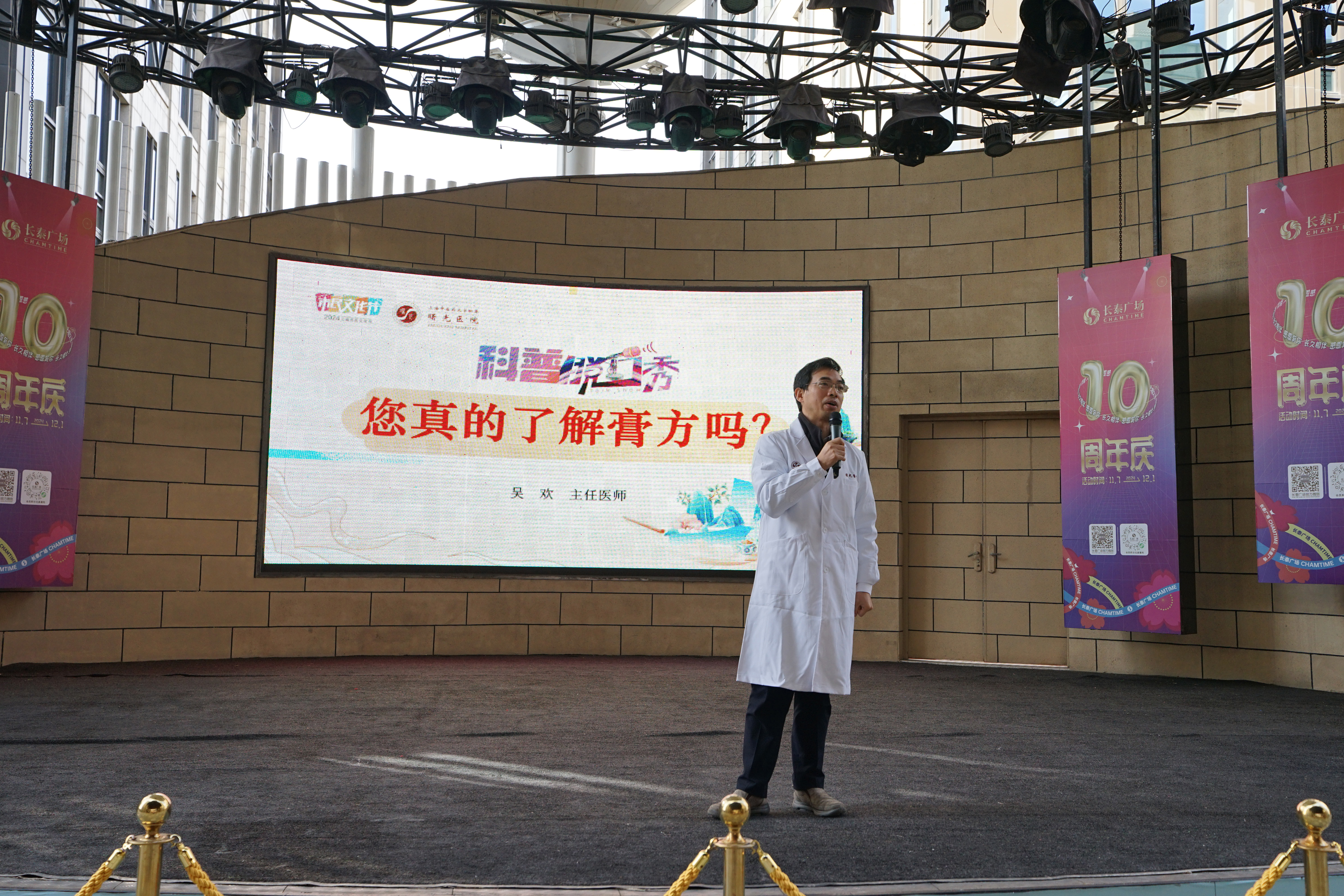 活动中,“科普脱口秀”吸引了在场市民的注意。曙光医院传统医学科吴欢主任医师、妇科杨梦琪主治医师分别为大家带来《你真的了解膏方吗?》《小主请用膳》科普脱口秀。