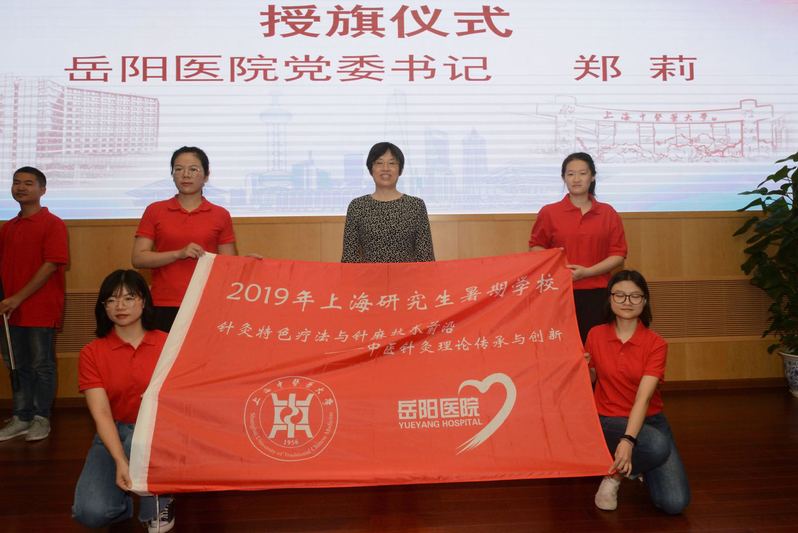 岳阳医院院长周嘉代表医院对全体参与暑期项目的学员表示热烈欢迎,希望通过两周丰富切实的学习和实践能够帮助大家对中医针灸形成更加全面客观的看法,同时启发同学们的创新思维,更好的走向中医针灸科学学术前沿。岳阳医院将坚持推进针灸学科的建设,提高针灸学与生命科学基础研究水平与深化的效果,促进学科人才的培养和建设,为针灸的发展作出贡献。 岳阳医院党委书记郑莉向学员代表授予暑期学校旗帜。