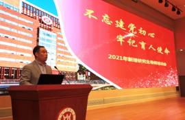 为全面贯彻党的教育方针,落实导师“立德树人”根本任务,加强研究生导师队伍建设,提高研究生培养质量,我校于2021年4月25日下午在学校图书馆裙楼四楼学术报告厅举行了2021年新增研究生导师培训会,共有173位新增导师参加会议。校长徐建光在线发表重要讲话,副校长陈红专作专题报告。
