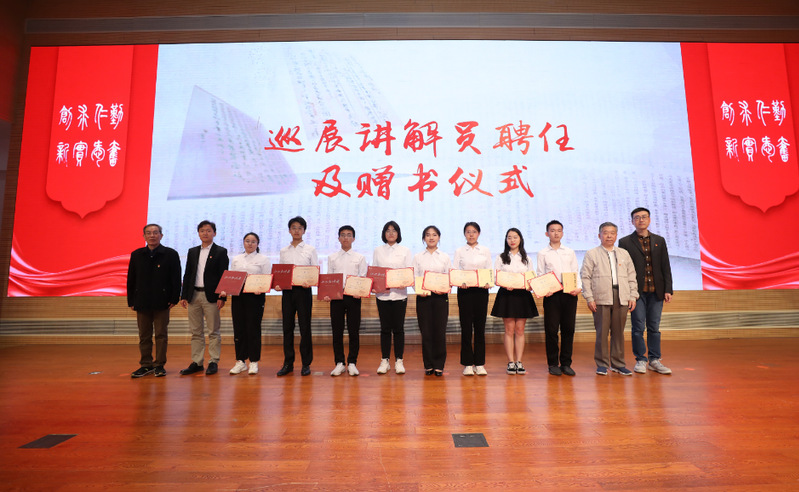 每个展品都承载着一个感人肺腑的故事。每个故事只有讲得精彩、讲得深入人心,才能让展览“活起来”“实起来”。基础医学院党委招募、组建、培训巡展讲解员,在锤炼会讲红色故事的硬本领上做“加法”,让红色展览把家国情怀根植于心。学生讲解员们通过集中培训、实地参观、查阅资料、研讨交流等方式在课后做了很多“功课”,并获得感悟:“我们也要像革命先辈一样去奋斗、去搏击,为属于我们的事业不断拓宽青春的赛道。”学校关工委副主任余小明、顾家柱,上海市档案局(馆)利用服务部主任张斌、副主任张姚俊为讲解员颁发聘书,并向学生代表赠送《初心的传承——中国共产党人的家风》《跟着档案看上海》等红色主题书籍,寓意“红色传承接力棒”传递到追逐大医强国梦的中医学子身上。在仪式启动前的师生座谈会上,余小明和顾家柱回忆开云电竞官网下载安卓2003年搬迁至张江“二次创业”的难忘经历,勉励学生为中医药事业的美好未来接续奋斗。