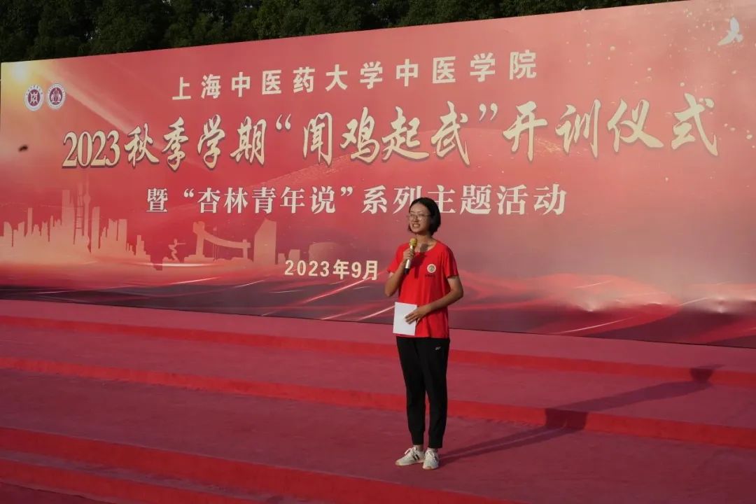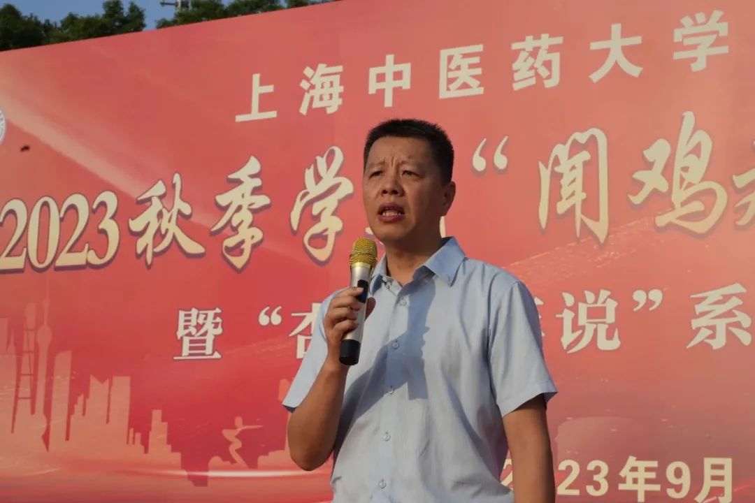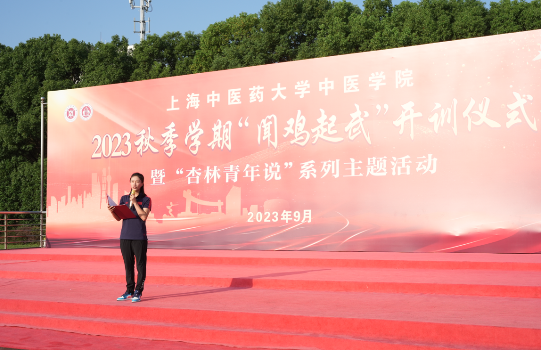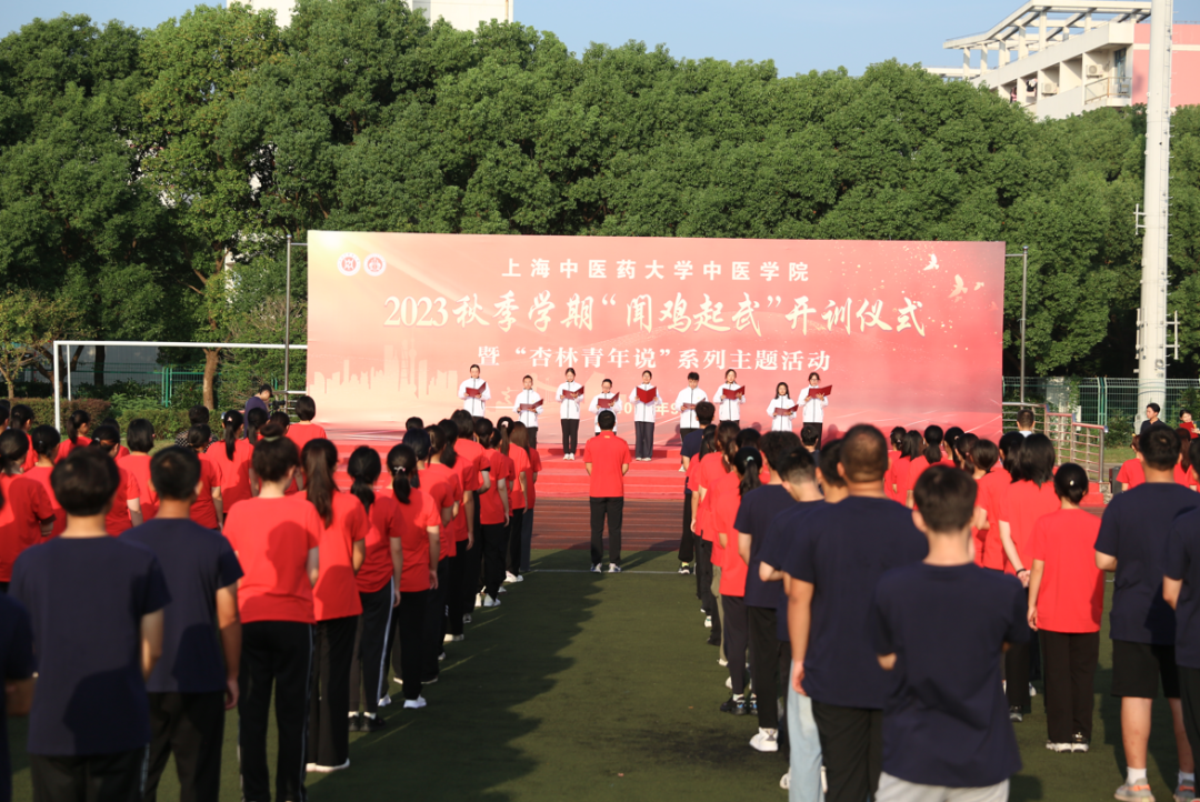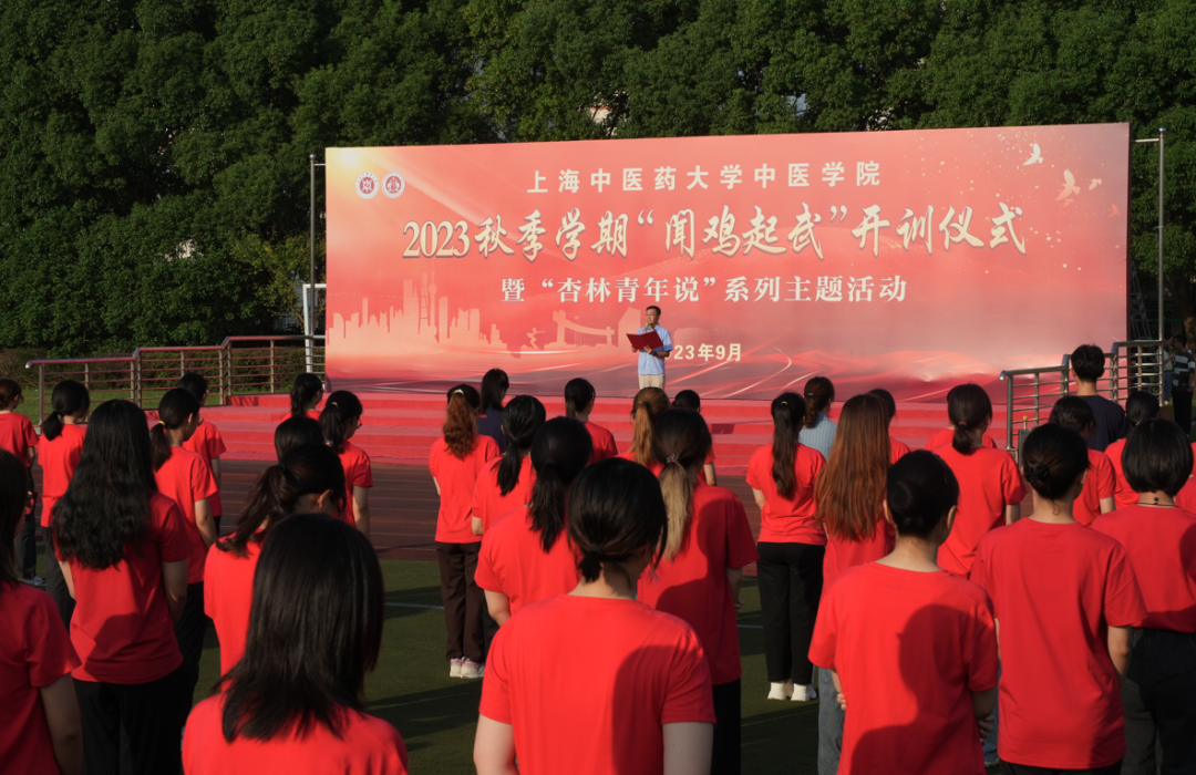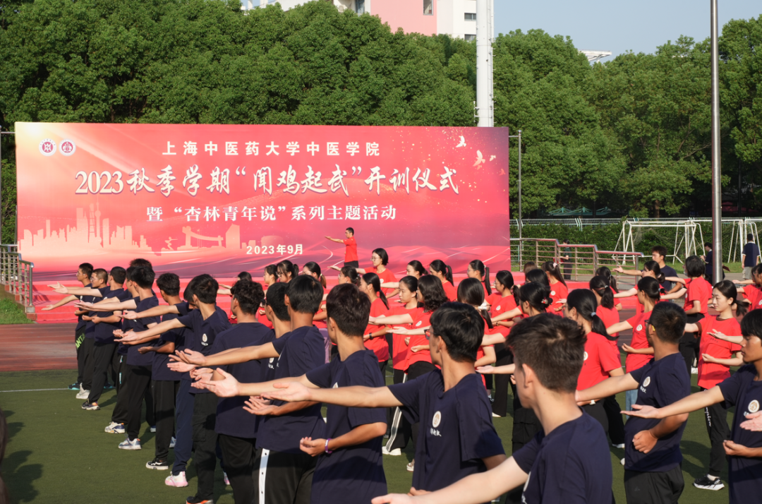 晨起闻鸡鸣,“武”动正青春。9月19日,中医学院在学校体育场举行2023秋季学期“闻鸡起武”开训仪式暨“杏林青年说”系列主题活动。中医学院党委书记夏文芳、党委副书记陆佩丽、副院长李海峰,体育部国际武术交流中心主任王宾,学校心理咨询中心谌誉,学院全体学生辅导员以及2023级全体本科新生等近250人参加。活动由中医学(屠呦呦班)蔡嘉姮和中医学(五年制)欧阳冠夫主持。