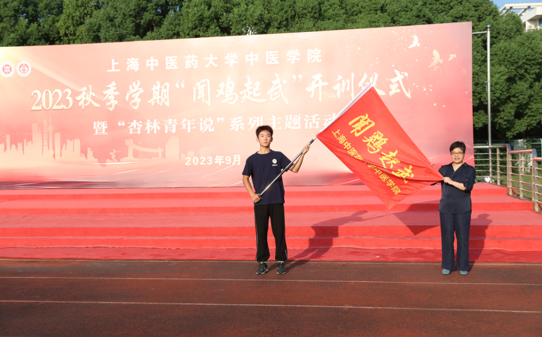 朗朗诵读声,灼灼医者心。“凡大医治病,必当安神定志,无欲无求,先发大慈恻隐之心,誓愿普救含灵之苦。”仪式在上届优秀学员《八段锦》汇报展示和《大医精诚》(节选)齐声诵读中拉开帷幕,全面展示学生们在经典诵读和功法学习上的成果。随后,夏文芳宣布开训并为“闻鸡起武”活动授旗,新生代表张进接旗。李泽卿作表态发言:“必将充分利用清晨宝贵时光强健体魄,将闻鸡起‘武’之精神运用到学习生活各方面,争做德智体美劳全面发展的杏林人!”
