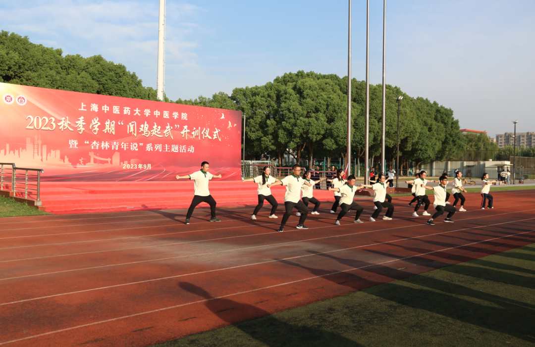 为深入学习贯彻落实党的二十大精神,培养德智体美劳全面发展的建设者和接班人,中医学院党委充分发挥政治功能,加强对青年学生政治引领,用中华优秀传统文化涵育青年,以学院富有特色的“闻鸡起武”项目为载体,从“形神合一”中医理念出发,中医药文化与传统体育文化融合交织,在具体实践中实现育心、育体、育志。