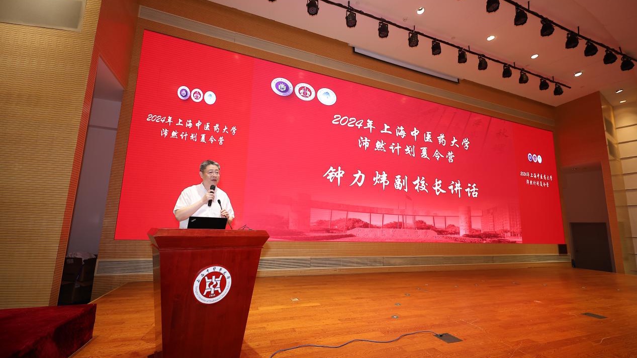 副校长钟力炜在结营仪式上讲话,对本次夏令营的成功举办表示祝贺,希望同学们能将在夏令营中学到的知识、受到的启发应用到未来的学习和生活中,不断探索,勇于创新,将中医的精髓传承下去,同时赋予它新的时代内涵,为实现个人梦想和中医药发展贡献自己的力量。