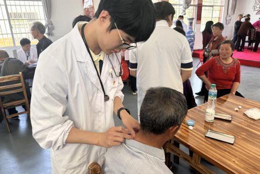 在基层健康服务方面,实践团充分发挥专业优势服务当地群众。在石桥村开展的联合义诊活动中,中医诊断、血压测量、针刺疗法、推拿治疗等服务项目有序开展。由中医学院博士研究生杨帅携带的中医智能体质辨识仪受到村民广泛关注,其搭载的智能手环脉象监测功能获得一致好评。杨帅表示:“中医药现代化建设的要义在于提升服务的可及性,让传统医学更好地惠及基层群众。”实践团成员耐心为村民提供健康指导,包括穴位按摩技巧、药食同源膳食建议等个性化方案。
