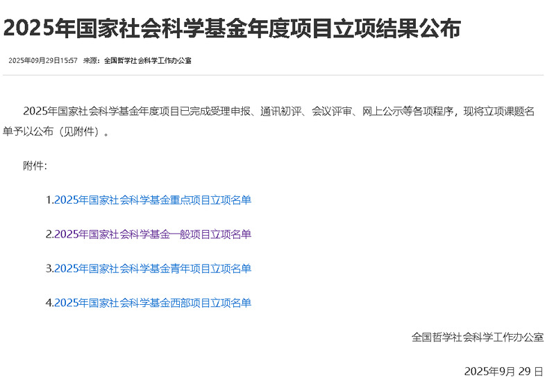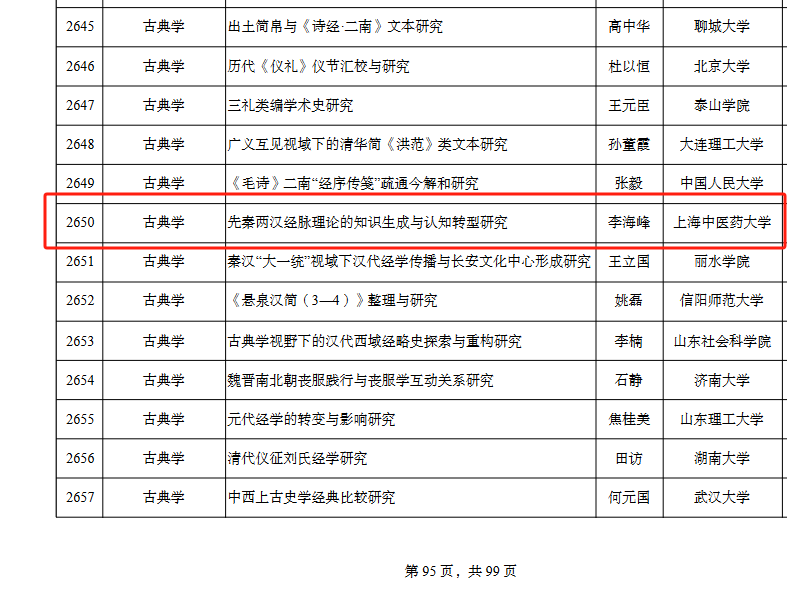 9月29日,全国哲学社会科学工作办公室公布了2025年国家社会科学基金年度项目立项名单,我院李海峰教授申报的一般项目《先秦两汉经脉理论的知识生成与认知转型研究》获批立项。