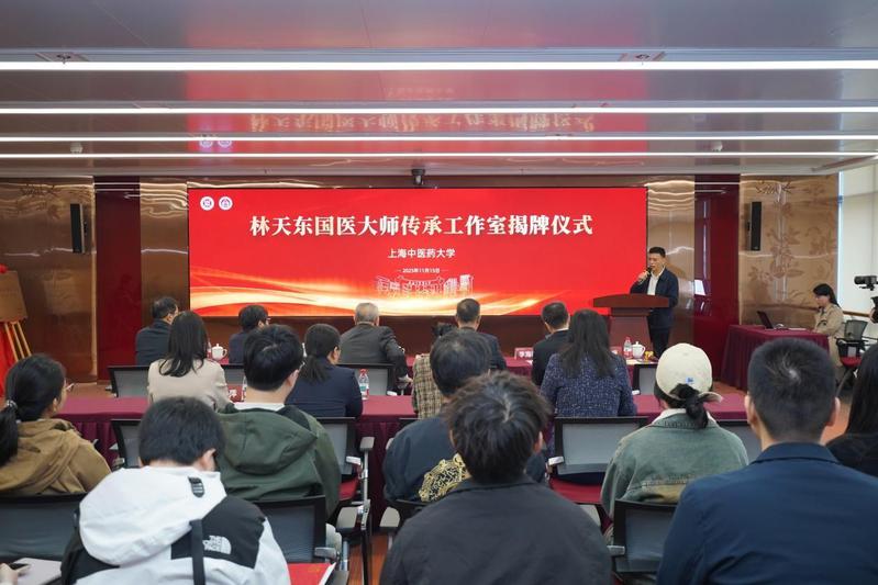 林天东国医大师,校党委副书记、纪委书记周斌,中医学院党委书记夏文芳,中医学院院长吕嵘及副院长李海峰,上海中医健康服务协同创新中心、中药现代制剂技术教育部工程研究中心主任洪燕龙,林天东国医大师传承弟子刘国萍、薛辉,以及相关教师和青年学生代表参加揭牌仪式。活动由吕嵘主持。
