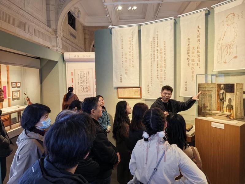 2025年12月19日下午,中医学院第六党支部牵头联合第二党支部、研究生党支部及本科生党支部,共同开展“溯源海派中医,筑牢传承初心”主题党日活动,组织师生赴上海历史博物馆参观“当归黄浦春——海上中医与健康生活”特展。中医药博物馆党支部副书记郭峰老师受邀担任本次活动的特邀讲解员,与师生们一同开启海派中医文化探索之旅。郭峰老师不仅深入浅出地解读了展陈的核心内容,更详细介绍了展览的策划初衷与筹备历程,带领大家系统解锁了海派中医“开放兼容、创新发展”的独特发展脉络。