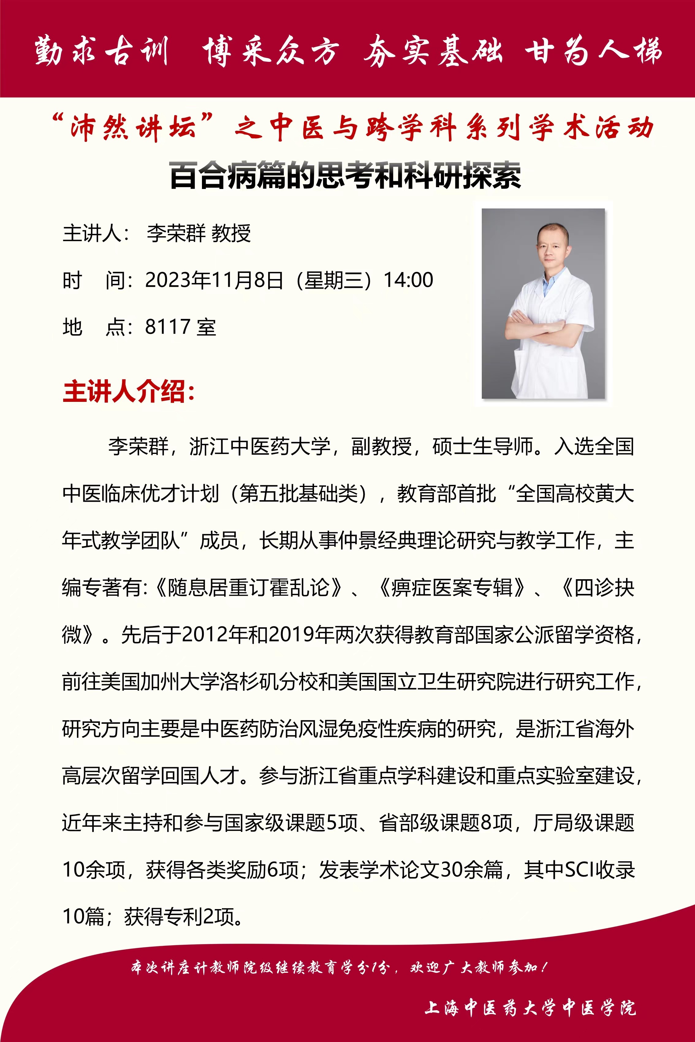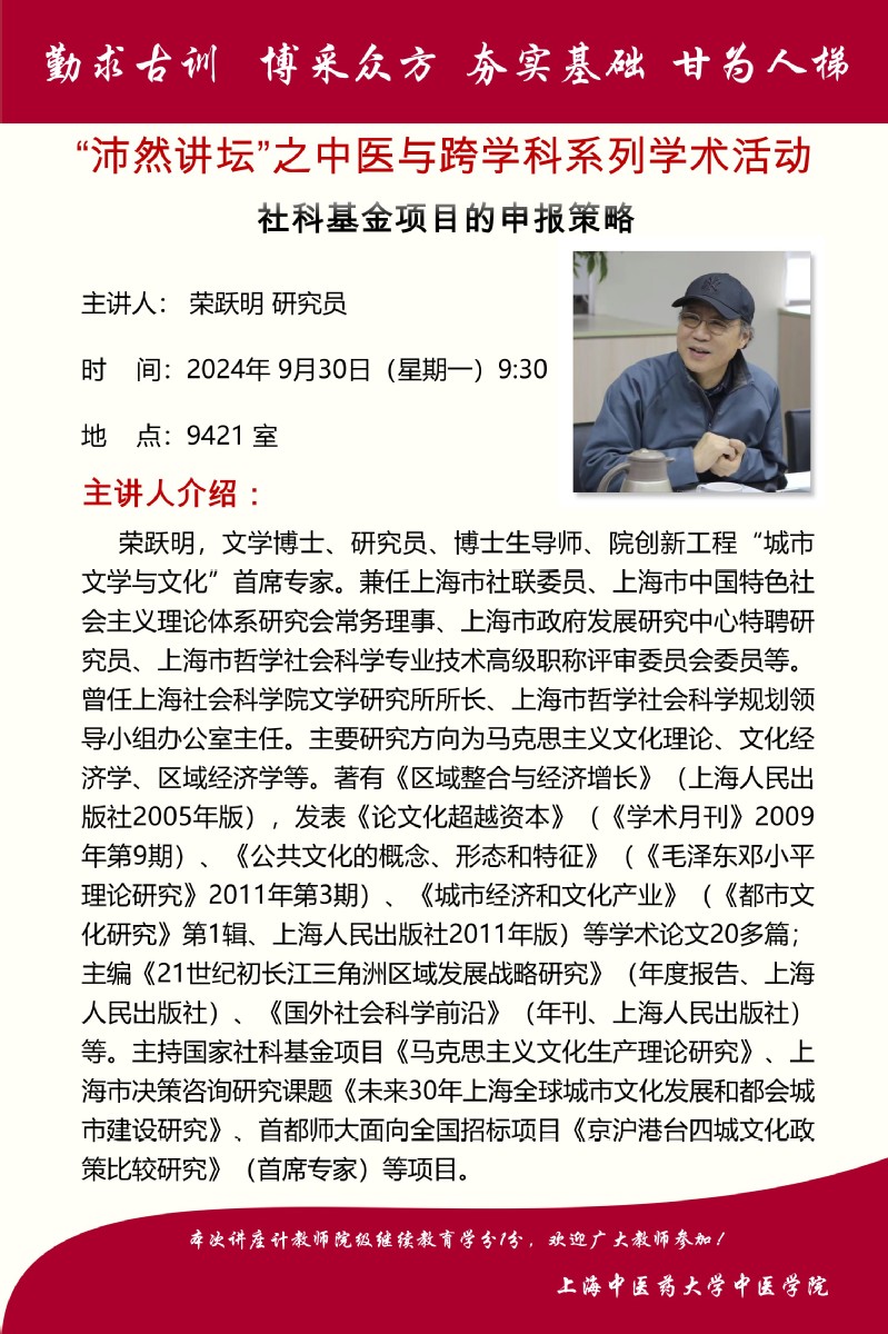 “沛然讲坛”之中医与跨学科系列学术活动——社科基金项目的申报策略
