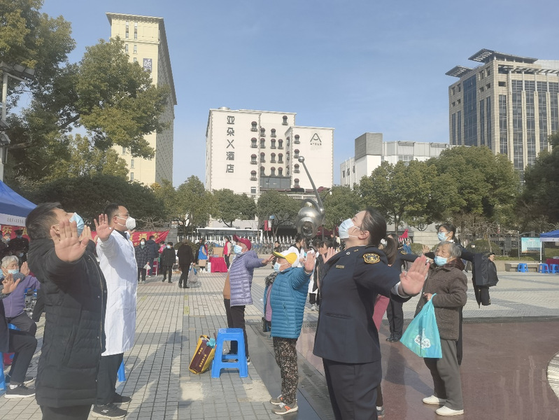 3月3日下午,支部书记毛慧娟老师带领支部党员秦梦、程珂、郭光昕3位老师,以及4名优秀学生,参加张江镇党委主办的“学雷锋”主题党日,为群众提供现场义诊、敷贴与艾灸、推拿服务、功法教学等志愿服务。