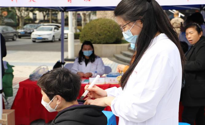 中医认为,颈肩腰腿疼的发病原因主要有风寒入侵,劳损过度,阳气不足等原因,敷贴与艾灸具有疏通经络,散寒止痛等作用。毛慧娟老师在现场用穴位敷贴以及局部艾灸对其进行温热刺激,其简单有效、操作方便,广受大众欢迎,除此之外,老师们向群众科普耳穴知识并进行体验,现场十分热闹有趣。