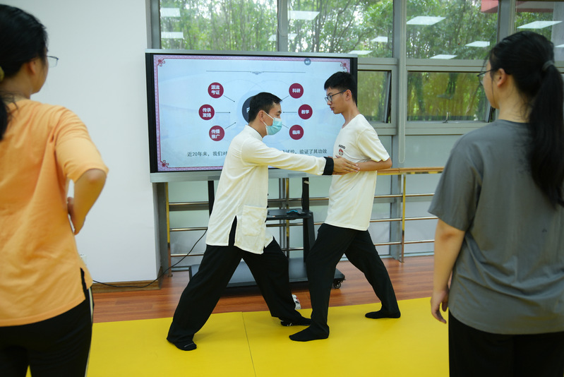 针灸推拿学院针推文献教研室主任虎力老师和夏令营青年指导老师秦元、郭光昕两位副教授带领育苗班的营员们晨练功、晚读经,以培养学生积极向上的内在修养,传承中医经典的文化智慧。