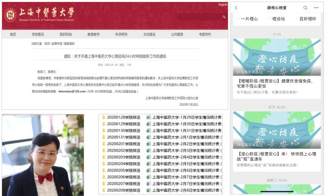 根据教育部和市教委的要求以及广大师生的实际需求,经过学生工作党总支研究,总支向学校疫情工作领导小组报告并开通了24小时网络服务,为广大学生提供心理援助工作。专门制定了新型冠状病毒感染的肺炎疫情心理危机网络服务方案,每日形成心理危机网络服务日报,组织全体辅导员和心理工作者参加教育部心理援助热线培训工作,通过微信公众号每日推送心理知识,着力化解学生心理恐慌,降低潜在风险。心理咨询与发展中心党员谌誉,是已经定居上海的武汉人,她在疫情发生后的第一时间报名上海市级层面抗击疫情心理援助中心工作组,积极参加相关培训,进入备战状态,展现了一名党员的责任担当。