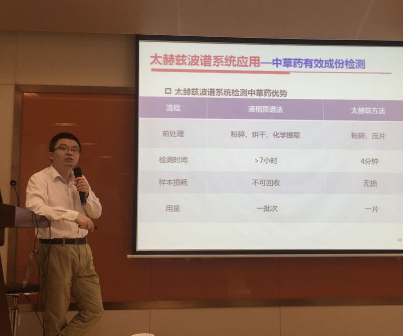 学术报告环节中,朱亦鸣作题为“太赫兹波谱技术进展与应用”的学术报告,结合自身太赫兹波谱领域的研究专长,从技术创新、国民经济发展和国家安全等角度出发,讲解了太赫兹波谱系统的发展历程,讲述了其团队在仪器创制、软件设计、产业发展等方面取得的重大突破,以及该技术在生物医学、物证鉴别、毒物筛查、反恐保障等不同领域的应用前景。其团队近期开展的关于太赫兹波谱系统在中草药有效成分检测中的应用研究,获得了在场师生的关注。