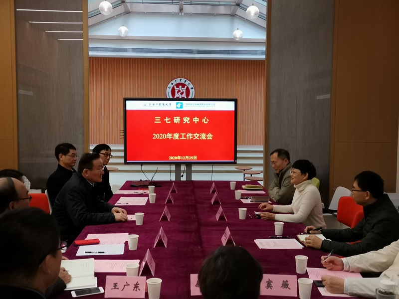 为进一步推进我校与广西梧州中恒集团股份有限公司共建的“三七研究中心”各项工作,总结建设成效,展望未来合作与发展。2020年12月25日上午,我校在中药研究所召开“三七研究中心”2020年度工作交流会。广西广投医药健康产业集团常务副总经理、书记庞华,广西梧州中恒集团股份有限公司副总经理、广西中恒创新医药研究有限公司总经理陈明等企业领导及代表到场,我校校长徐建光、副校长杨永清出席,校科学技术处(学科建设办公室)处长赵咏芳、中药研究所领导班子和相关研究人员参加,会议由中药研究所副所长王长虹主持。