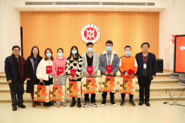 会上,举行了中药研究所2020年药理技能大赛颁奖仪式,研究所副所长吴晓俊宣读获奖名单。校领导朱惠蓉、陈红专,研究所所长王峥涛共同为获奖同学代表颁发证书、发放春节慰问品,并分别向师生们送上新年的美好祝愿和亲切慰问,王峥涛所长献上自拟春联:“上联:牛膝牛蒡牛至牛尾蒿百草代煎同献丑,下联:牛黄牛角牛骨牛皮胶俯首甘为孺子牛,横批:牛气冲天”,向大家表达新春祝福。