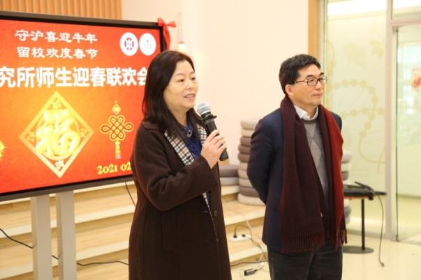 为了庆祝中国共产党成立百年华诞,关心关爱寒假留校同学,丰富假日文化生活,2月10日下午,中药研究所在5号楼一楼研究生学术交流中心举行“守沪喜迎牛年,留校欢度春节” 寒假留校师生迎春联欢会,校党委副书记、副校长朱惠蓉,副校长陈红专,学生工作部部长陶思亮、副部长王鑫等出席,中药研究所领导班子、研究室主任、研究生导师以及全体寒假留校研究生同学参加。联欢会由2017级博士研究生廖琦和2020级硕士研究生张方丽主持。