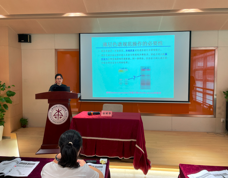 实验操作课培训环节由中药研究所谷丽华、金武燮、潘丽、张紫佳等老师负责,李凡、刘静玉、王璐璐、吴冰筱等研究生积极参与讲解。实验课以人参为例,分别对薄层色谱实验操作、影响因素和仪器使用等方面进行了培训,探讨不同来源薄层板以及不同操作方式对薄层色谱行为的影响。全程互动积极、交流活跃。