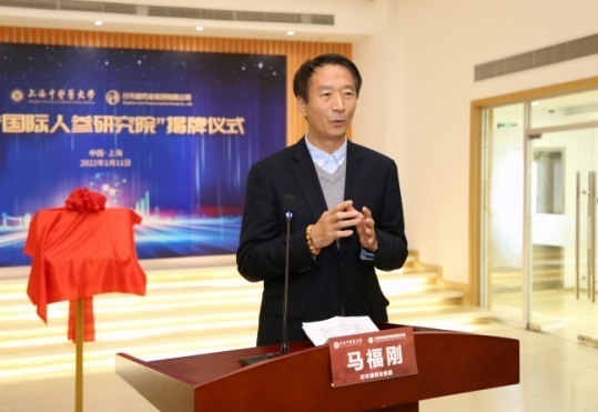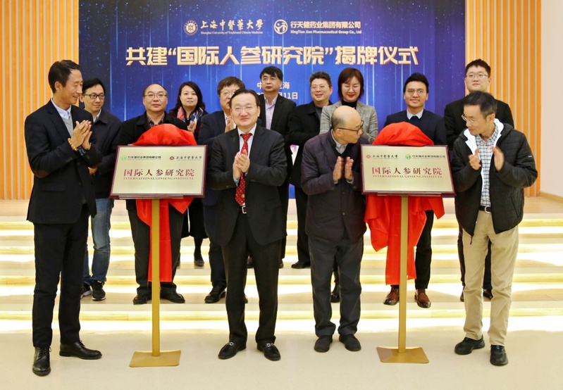 徐建光校长、杨弘会长、马福刚董事长和申强院长共同为“国际人参研究院”揭牌。