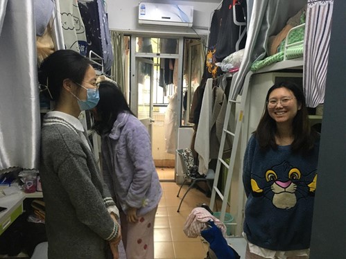 疫情期间,蔡心银坚持定期到学生寝室走访,及时了解、解决同学们的困难和需求,有效缓解大家的紧张和焦虑情绪,鼓励大家科学防疫,科学计划学习、科研和生活,以实际行动践行科技报国责任;她与学生随时保持线上联络,及时掌握关注封控期间学生们各方面的情况。侯茂奇在研究生导师们无法入校的情况下,还担负起研究室里研究生的带教工作。两位老师和研究生们之间亦师亦友,建立起畅通的师生沟通渠道。