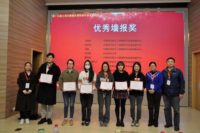 接下来的青年报告中,19位青年教师、博士生呈现了精彩的学术汇报,对植物生长发育、次生代谢调控、分子植物育种及合成生物学等植物科学领域的相关研究进行了热烈的讨论和交流。经过专家评审与现场交流,根据研究意义、创新性、逻辑性和现场答疑表现等综合打分,分别评出科研新星奖1名,优秀报告一等奖1名、二等奖3名、三等奖5名、鼓励奖10名以及优秀墙报奖11名。来自中国科学院分子植物科学卓越创新中心的黄永财博士获得科研新星奖;王家昌博士获得科研新星入围奖;来自中国科学院分子植物科学卓越创新中心的王刚获得优秀报告一等奖;来自复旦大学生命科学学院的杨林、中国科学院分子植物科学卓越创新中心的郝宇涵、华东师范大学生命科学学院的逯佰艳分别获得优秀报告二等奖;李雅静、贾鑫磊、徐婉约、刘海月、姚玲娅分别获得优秀报告三等奖。