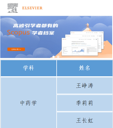 我所王峥涛教授、季莉莉研究员、王长虹研究员入围中药学学科高被引学者。