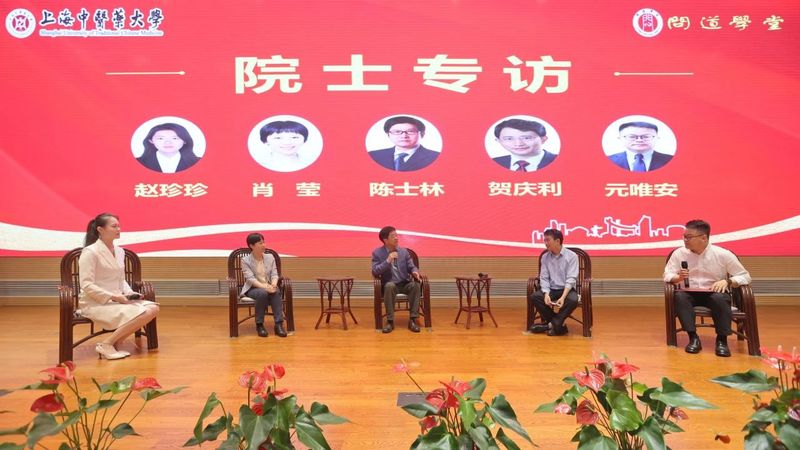 院士专访环节由交叉科学研究院博士研究生赵珍珍主持,中药研究所肖莹研究员、创新中药研究院贺庆利研究员、附属曙光医院元唯安主任医师作为青年教师代表与陈士林院士就中药资源、中药合成生物学和临床药学领域等热点问题展开热烈探讨,现场同学也踊跃提问,气氛热烈。