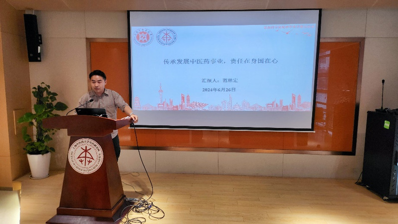 市优秀毕业生范林宏以“传承发展中医药事业,责任在身国在心”为题,结合自身经历分享如何以实际行动传承实践科学家精神。